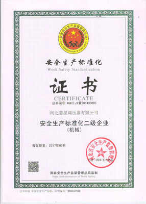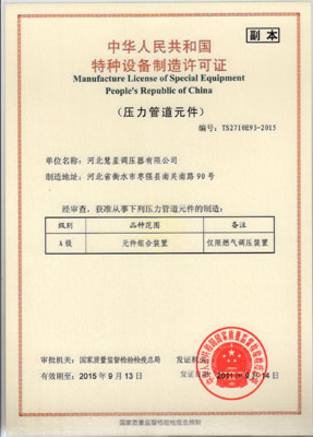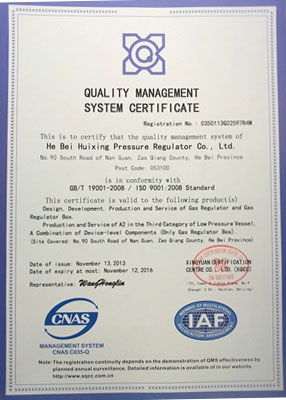 主導(dǎo)產(chǎn)品切斷式煤氣調(diào)壓器通過(guò)河北省經(jīng)濟(jì)委員會(huì)、省標(biāo)準(zhǔn)計(jì)量局認(rèn)可,獲得采用國(guó)際準(zhǔn)認(rèn)可證書
